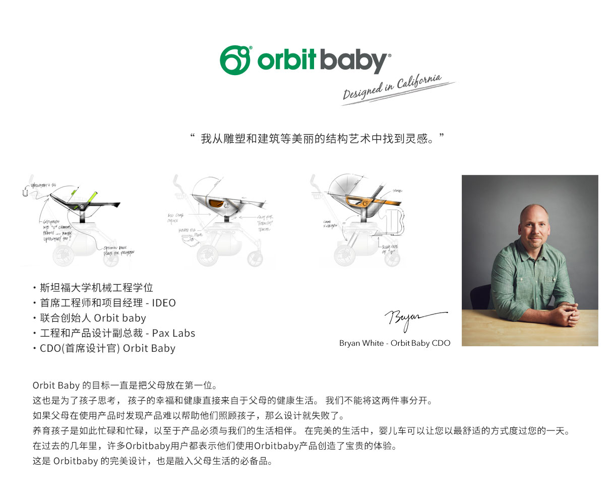 凭借多年高端婴儿车市场经验与创新产品开发专业,我们全力打造最优质的 Orbit Baby 产品。